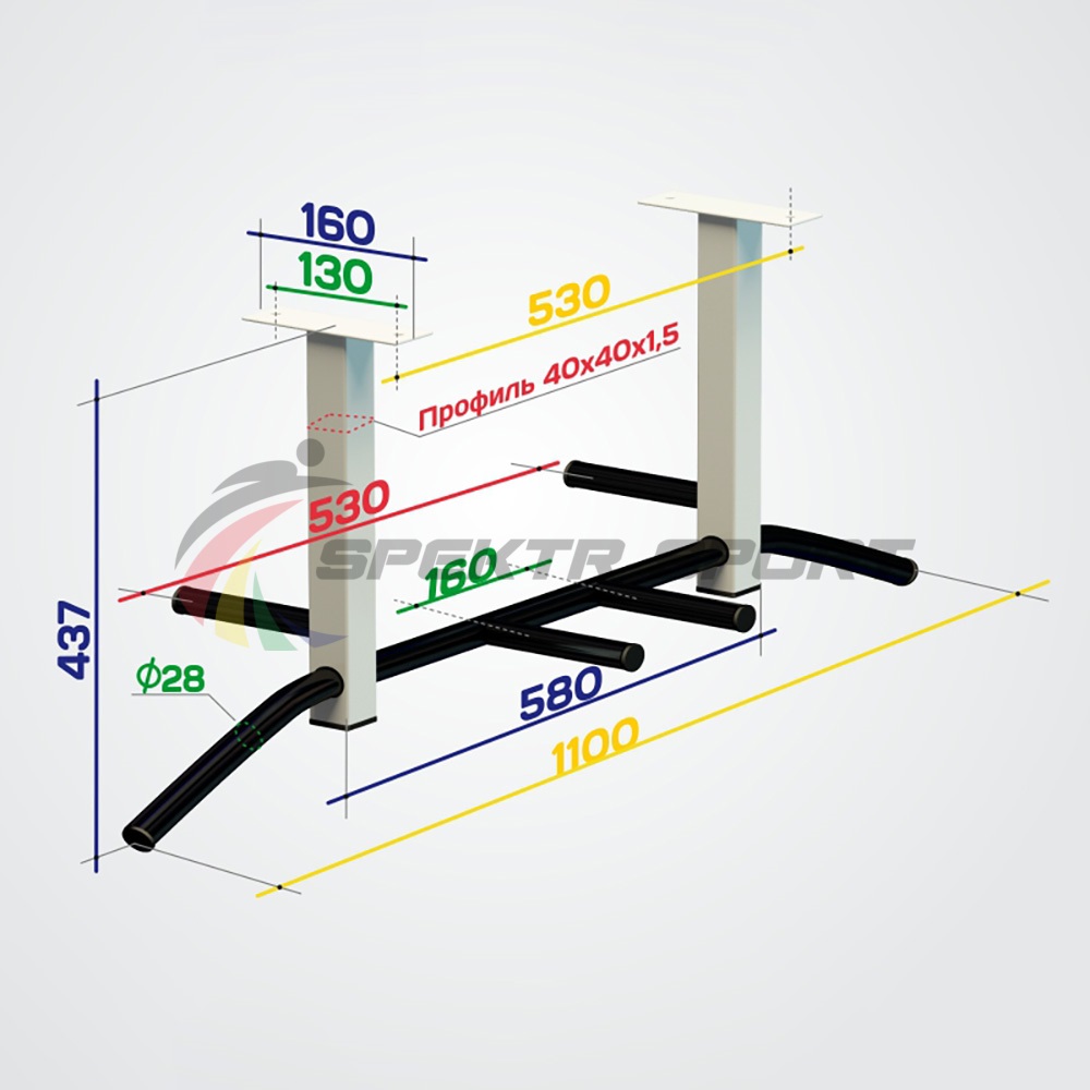 Материал турника - усиленная сталь 40х40х1.5 мм.